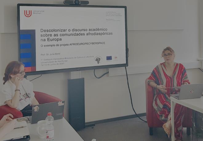 In her talk entitled “Descolonizar o discurso acadêmico sobre as comunidades afrodiaspóricas na Europa” Julia explored how researchers in the Global North can provincialize and deconstruct their own perspectives by engaging in conversation with Afrodescendant communities to explore and value artistic and activist spaces of knowledge production beyond academia.
