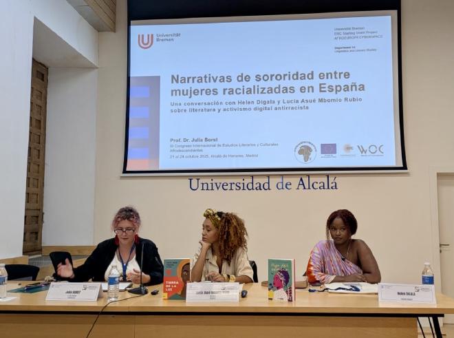 In the context of the III Congreso Internacional de Estudios Literarios y Culturales Afrodescendientes at the University of Alcalá de Henares, Julia moderated a round table discussion with Lucía Asué Mbomío Rubio and Helen Digala. They talked about Lucía’s latest novel “Tierra de la Luz” and the exploitation of migrants in Spain’s agricultural sector, and discussed the importance of networks of solidarity among African women in Spain and the impact of antiracist digital activism.