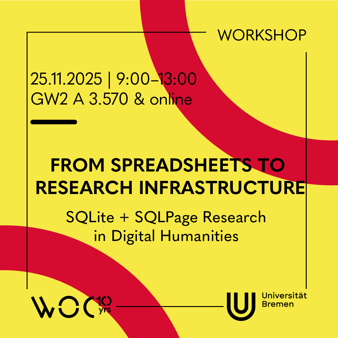 The workshop is open to everyone, regardless of technical background. Content is adapted to the knowledge level of the working group. The goal is to convey skills useful for research: structured data management, reproducible methodology, and the technical basis for web-based research platforms.